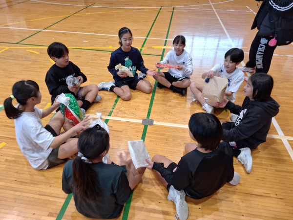 5.6年生もワクワクドキドキしながらクリスマスソングに合わせて交換です♪