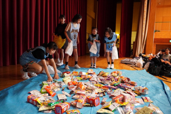 フリースローを決めると後藤監督からのお年玉ならぬ大量のお菓子がもらえるんです♡