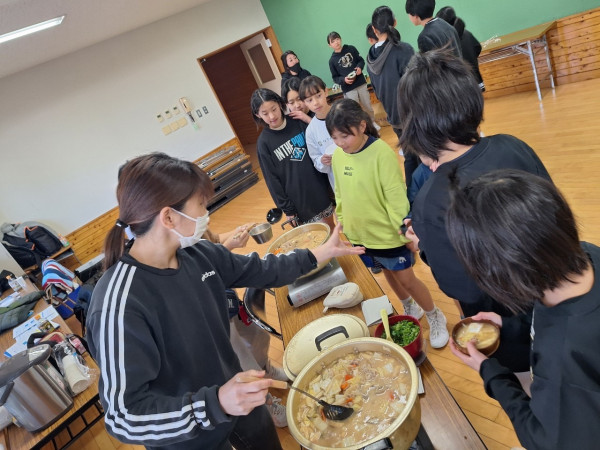 昼食は6年生お母さん達による愛情のこもった豚汁をいただきます♡愛情豚汁食べて今年もバスケットボール頑張るぞ!