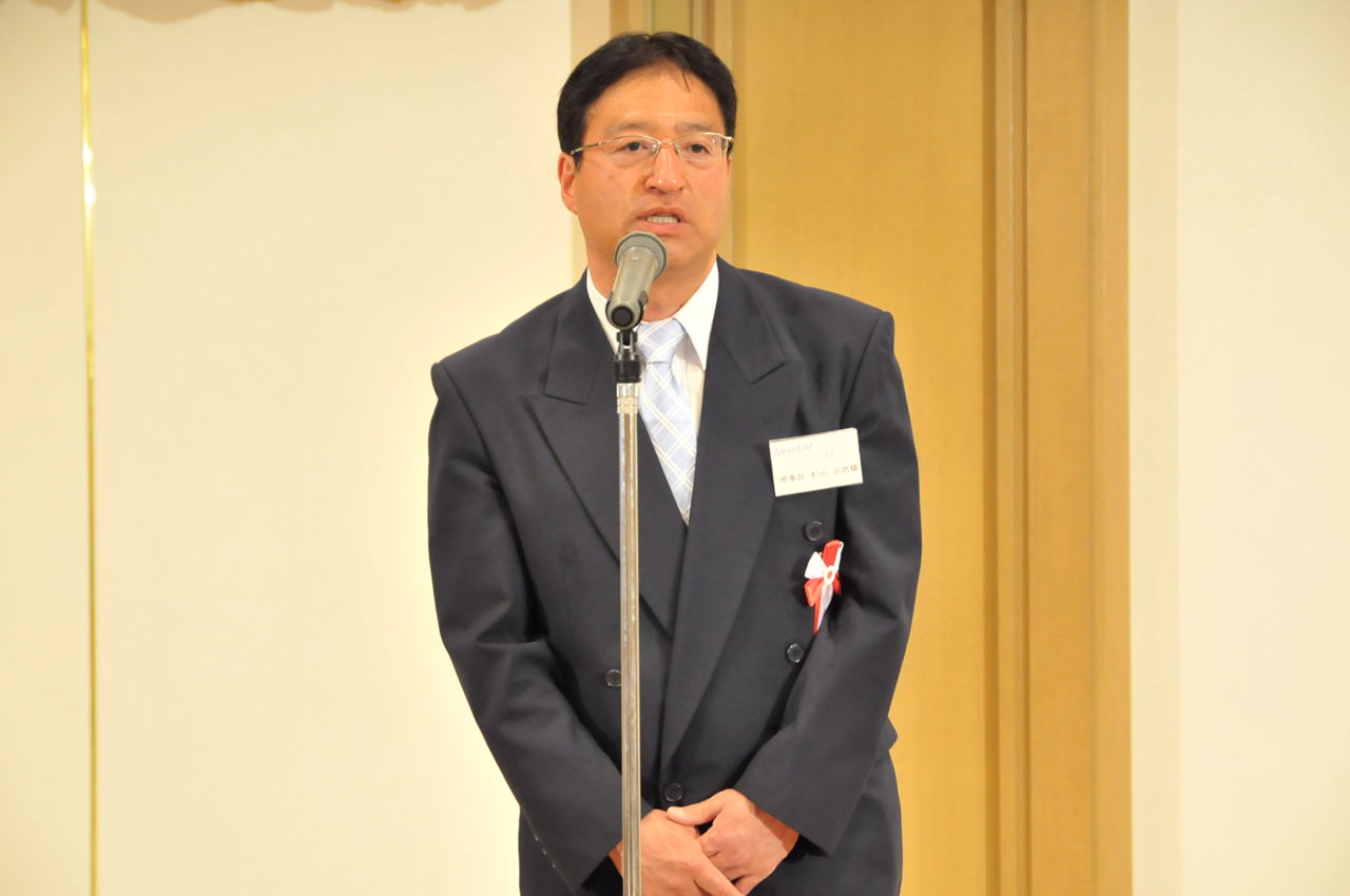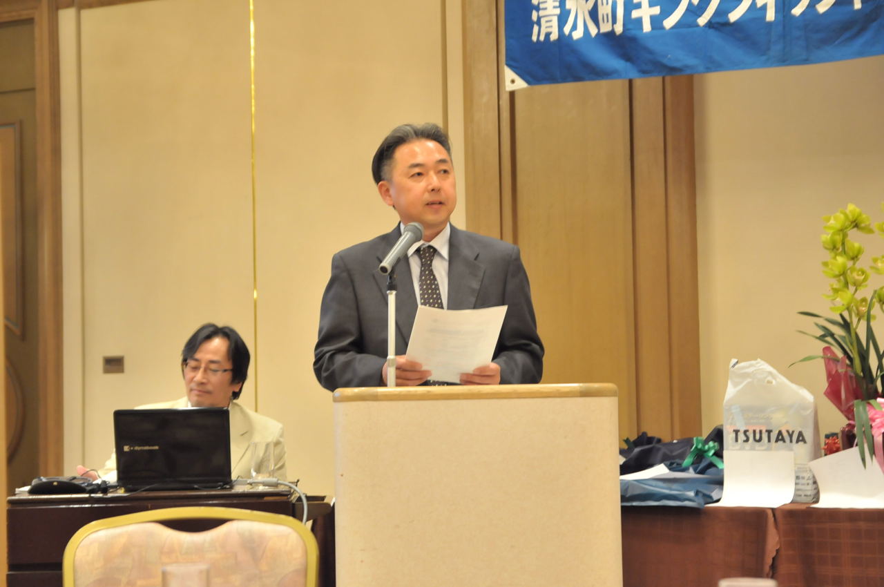 | 翔和会会長の坂部さんです。 | 清水町 町長の山本博保様からお祝いのご挨拶を頂きました。 |